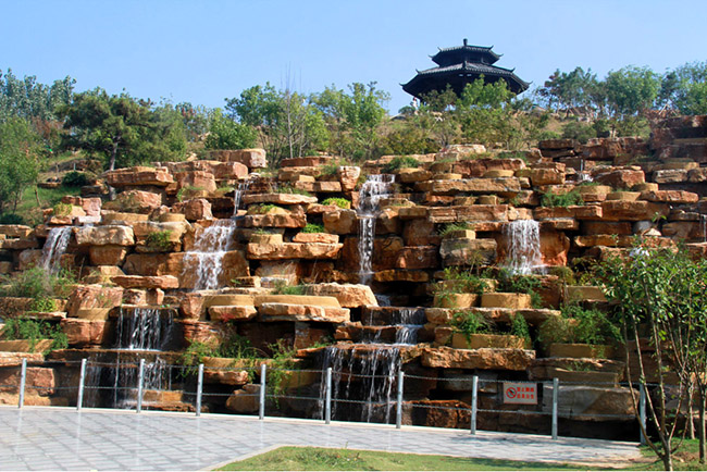 黃龍濕地公園還建了安平橋、如意橋、聚祥橋、虹橋等7座橋,以及先云亭、賈詠亭、漢陽(yáng)亭等10個(gè)亭子。東北處有一座假山,上有臺(tái)階步道、涼亭和瀑布水系,在山頂可俯瞰整個(gè)公園。