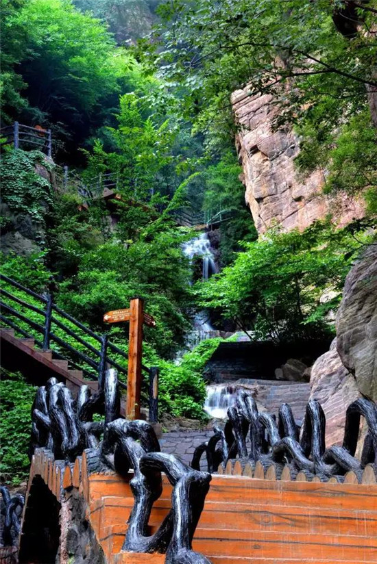 天路奇觀巨峰對(duì)峙、飛瀑濺雨、谷深且長、綿延向天,既有山水之樂,又可以強(qiáng)身健體,最關(guān)鍵的是其間山水交錯(cuò)、涼爽宜人,瀑布的流水在陽光下好像是閃亮的珍珠,如煙如霧的水絲撲面而來,舒服極了!