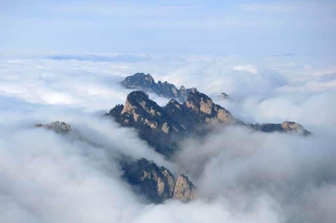 云海,是老君山的一大奇觀,而中鼎云海為老君山云海之首。云海出現時,放眼望去,云遮千里,霧鎖萬峰。猶如站在碧波萬頃的汪洋大海之中,翠峰隱現似動若靜。在上晴下陰的云海出現時,顯現出“海到天涯天為岸,山至極頂人為峰”的景觀。