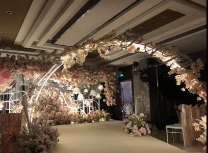 樹(shù)屋色系以白、粉、香檳為主,樹(shù)屋入口處一側(cè)做迎賓造景。