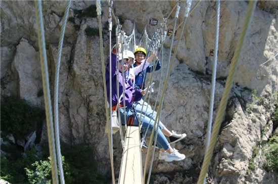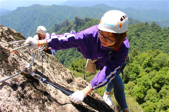 現(xiàn)在要為大家特別推薦的就是位于欒川國家5A景區(qū)老君山上,過二級索道不遠(yuǎn)處,海拔2000米左右,沿途風(fēng)景最美的飛拉達(dá)攀巖項(xiàng)目。如果不是親身體驗(yàn)一次,是無法描述那種從好奇到興奮、驚險(xiǎn)刺激的心理感受。聽專業(yè)人士介紹,飛拉達(dá)攀巖保留了野外攀巖的驚險(xiǎn)刺激,同時(shí)大大降低了對攀爬者的專業(yè)技術(shù)要求,在充分保障安全的前提下,讓喜歡山地運(yùn)動的人都能行走在懸崖峭壁之間,獲得極大的精神享受。
