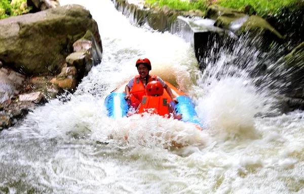 金頂山峽谷漂流漂程4公里,自然落差119米,是駐馬店首家水上漂流運(yùn)動(dòng)項(xiàng)目。漂流項(xiàng)目?jī)?nèi)設(shè)水仗區(qū)、鼓浪區(qū)、游泳區(qū)、更衣區(qū),沿途曲徑幽深、青山如黛、奇峰相對(duì),因全程曬不到太陽(yáng),素有“曬不黑的森林漂”之稱(chēng),吸引了眾多游客體驗(yàn)激情刺激水上運(yùn)動(dòng)。開(kāi)漂8年來(lái),已經(jīng)接待游客超過(guò)十幾萬(wàn)人次,成為豫東南區(qū)域最受歡迎的峽谷漂流水上運(yùn)動(dòng)項(xiàng)目。為了保證游客漂流體驗(yàn),我們前期對(duì)河道進(jìn)行了全部整修、硬化,新增了多個(gè)落差大的體驗(yàn)點(diǎn),提升了漂程的刺激性。今年春季雨水充足,完全具備了開(kāi)漂條件,并定于6月15日正式開(kāi)漂。