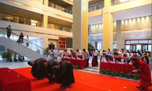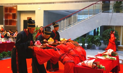 終獻(xiàn):獻(xiàn)粽子和雞蛋粽葉飄香,飛短流長,遙望汩羅江,未語淚兩行,悠悠天問千年唱,郁郁離騷萬古芳,壯志未酬懷沙恨,冤骨忠魂鎖端陽,蓬萊文章建安骨,屈子精神日月光,今日供奉英魂歸,五洲翻騰云激蕩,告慰先祖請(qǐng)安息,中華兒女有脊梁。