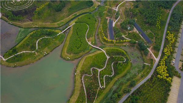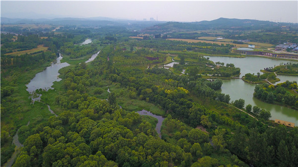 6月22日,俯瞰鶴壁市淇河國(guó)家濕地公園,河水碧綠、樹(shù)木蔥蘢。
