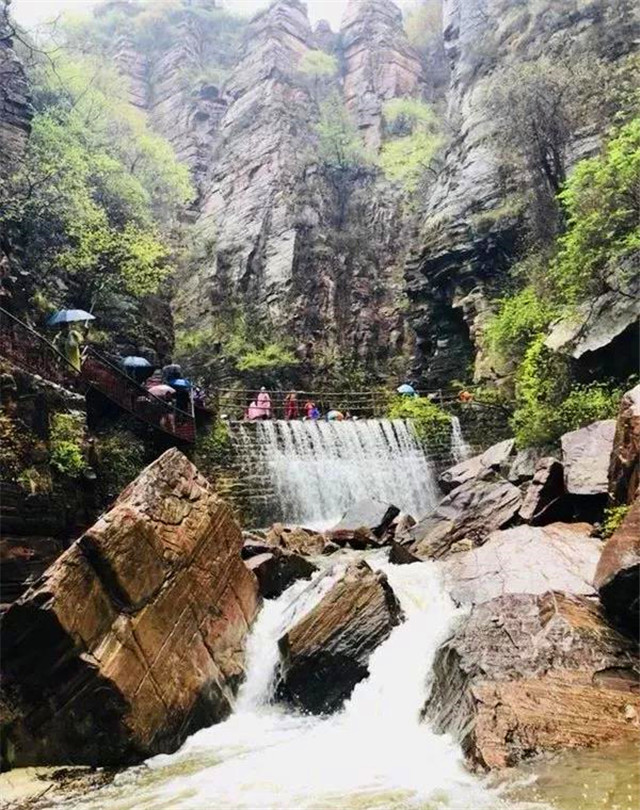 新鄉(xiāng)南太行雨后的瀑布,飛流好似千萬匹猛獸在搏斗,在怒吼,最后互相扭打著翻滾下來,濺得滿山珠飛玉散,一片霧氣燕騰。在這里令每一位游客真正感受到李白筆下的“飛流直下三千尺,疑是銀河落九天”的詩境。