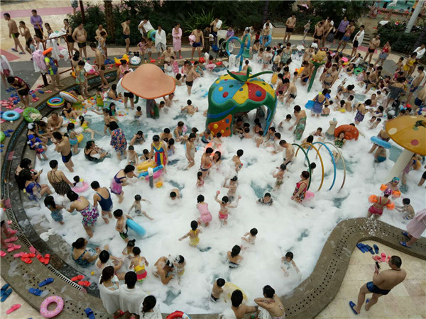 6月30日,堯山福泉溫泉“2018夏季冰泉節(jié)”盛大開幕,活動(dòng)現(xiàn)場(chǎng),游客泡冰泉、搬冰塊、砸冰塊降溫納涼.....熱鬧非凡。熱身泉四周用五顏六色的大冰塊堆砌,冰霧繚繞,宛如一幅冰火兩重天的場(chǎng)景 ,引起市民圍觀拍照。