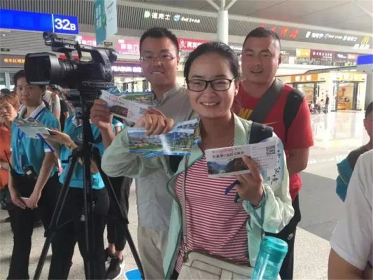 啟動(dòng)儀式后,太行大峽谷景區(qū)工作人員登上高鐵車廂,開(kāi)展流動(dòng)推介,利用特色表演、有獎(jiǎng)問(wèn)答、贈(zèng)送門(mén)票等多種形式和乘客展開(kāi)互動(dòng)。