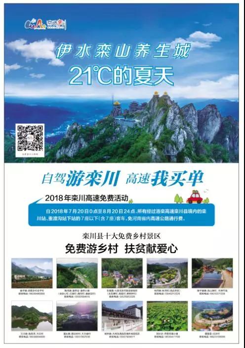 此次活動從2018年7月20日至8月20日,所有經(jīng)過洛欒高速欒川縣境內(nèi)的欒川站、重渡溝站下站的7座以下(含7座)客車免河南省內(nèi)高速公路通行費。