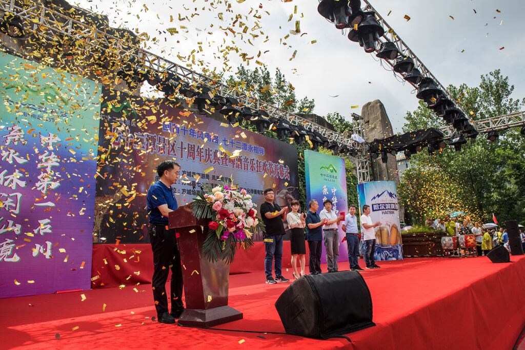 7月14日,“回首十年風(fēng)雨路,七十二潭永相伴”啤酒音樂狂歡節(jié)在七十二潭風(fēng)景區(qū)啟動(dòng)!方城縣政府黨組成員侯金耀、方城縣旅游局局長譚政、副局長邢巍等領(lǐng)導(dǎo)出席活動(dòng)。中國旅游報(bào)、河南日報(bào)、河南電視臺(tái)、河南交通廣播、鳳凰網(wǎng)、河南旅游資訊網(wǎng)、大河網(wǎng)等50余家新聞媒體以及來自全國各地近兩萬名游客參加了開幕式。