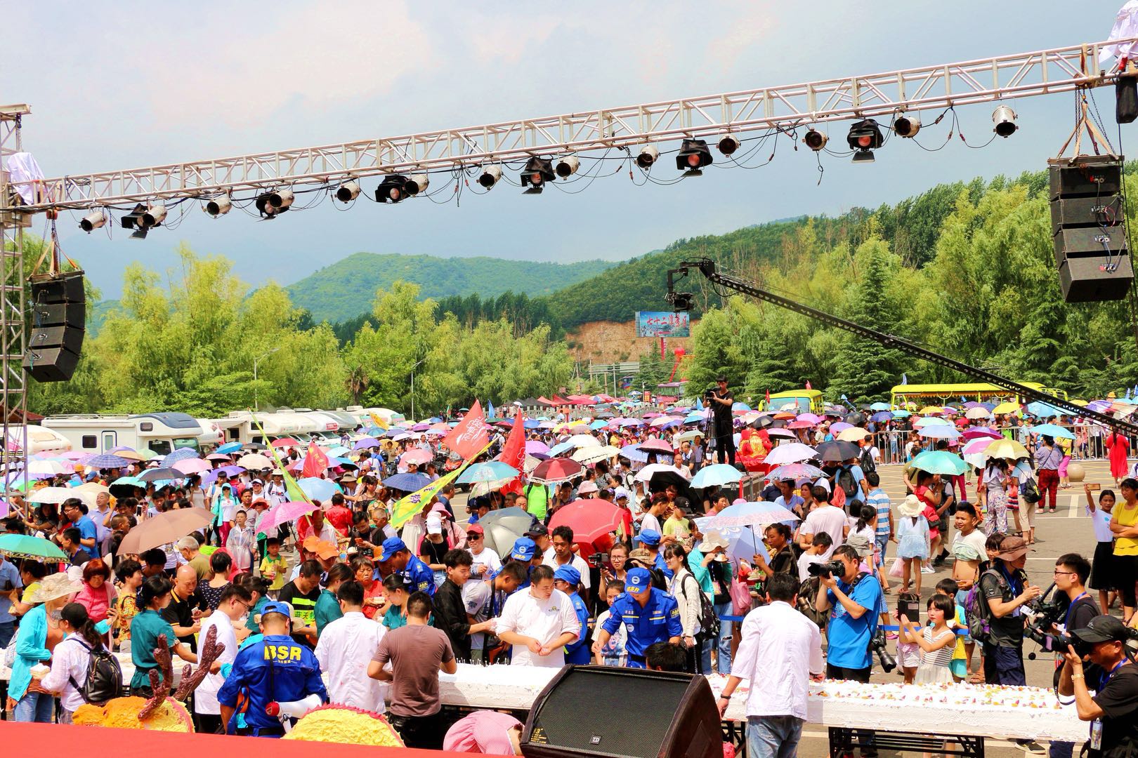 七十二潭景區(qū)為慶祝十周年華誕精心準(zhǔn)備了長達(dá)18米的二龍戲珠巨型蛋糕,游客紛紛上前合影,大呼驚艷。
