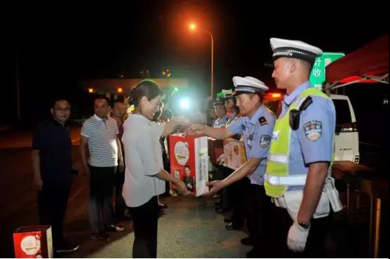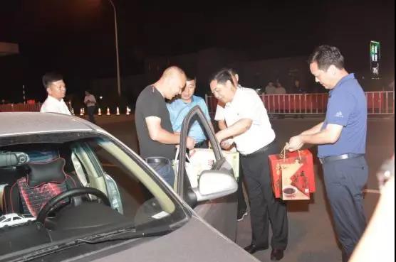 20日零時(shí),嵩縣舊縣鎮(zhèn)出站口,來自漯河市的姜先生,看到路邊站了那么多人,他和同車人嚇了一跳,聽到交警告訴他:你是第一個(gè)下站的旅游車輛,我們將有伴手禮相送。嵩縣人民政府縣長(zhǎng)宗玉紅與他握手問候,并送上伴手禮,這讓他們欣喜不已。“這么晚了,還有這么多人等著我們,嵩縣真是山美、水美、人更美,真是想不到!”