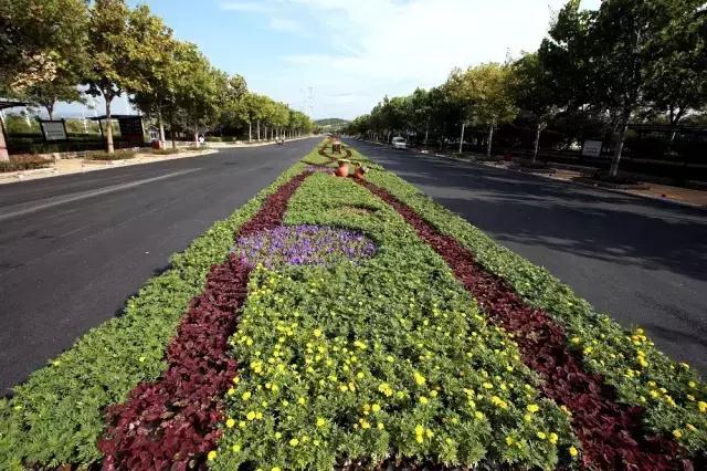 在百家?guī)r廣場(chǎng)前的大道上,成千上萬盆鮮花組成的景觀造型。綿延幾十米,清新靚麗的迎接游客。