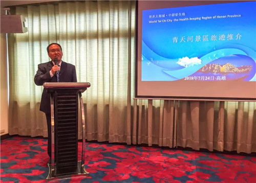 焦作市旅游局副局長李建陽、焦作市旅游協(xié)會會長馮志堅(jiān)與臺灣旅游業(yè)者親切交談