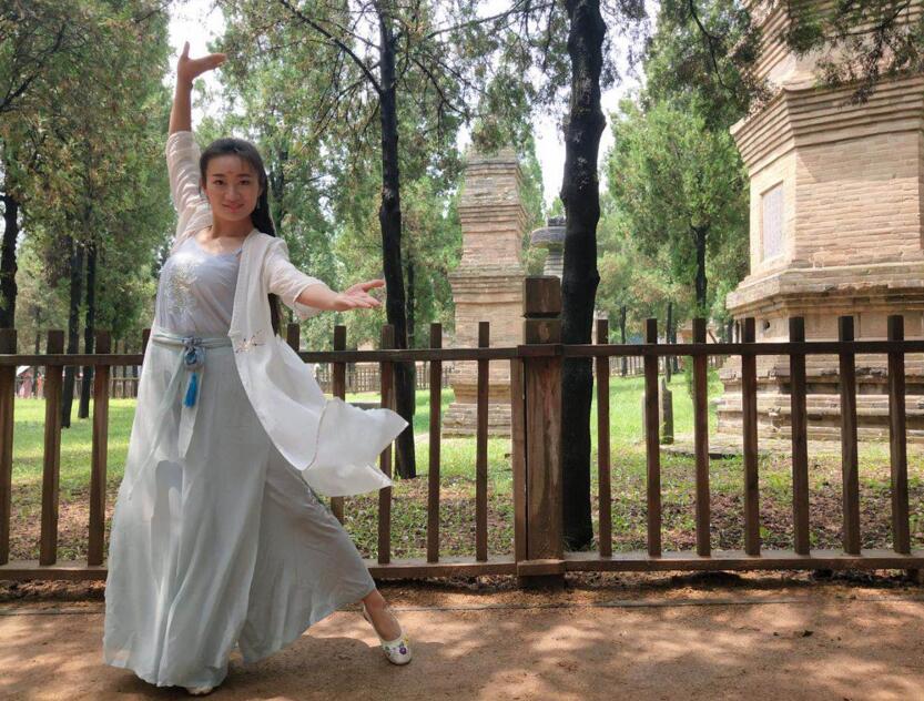 “神仙姐姐”白衣長裙塔林前翩翩起舞
