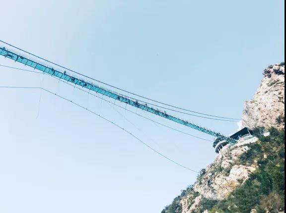 全透明玻璃天橋,一橋飛架兩山,名曰飛云天橋。走在橋上仿若漫步云端,一抬頭藍天白云伸手可觸,俯瞰橋下湖泊流水就在腳下,不可謂不美,不可謂不妙。