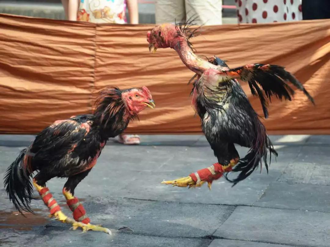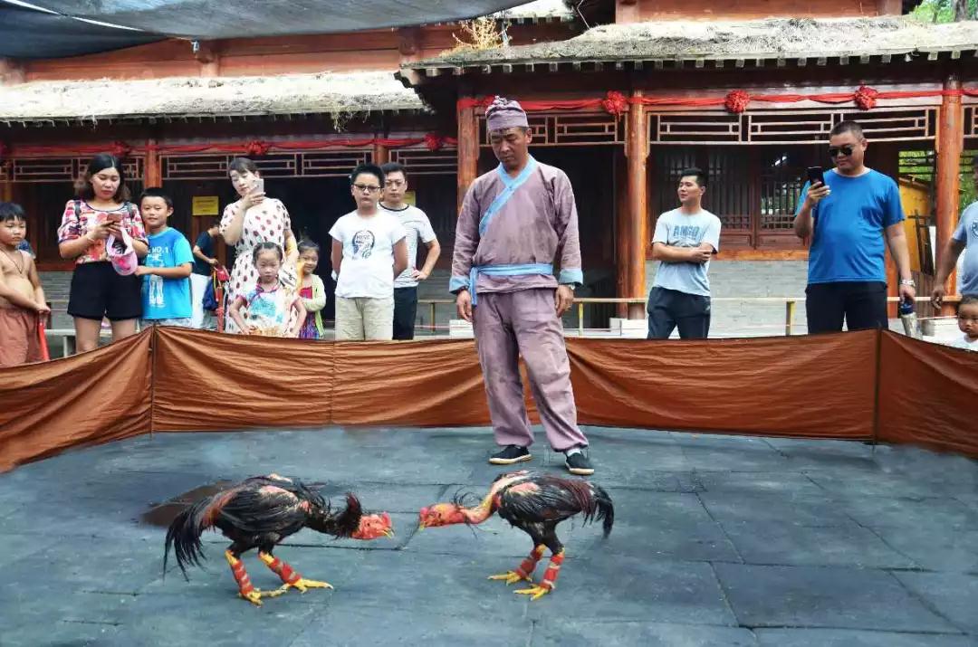 開始之時,斗雞師傅圈一場地,雙手抱來兩只體型魁梧、體質(zhì)健壯結(jié)實(shí)的斗雞,剛放地上便揮動著翅膀開始“比武”,你縱身一啄,我飛起一腳,互不相讓熱鬧非凡,觀眾或蹲或戰(zhàn)圍成一團(tuán)吶喊助威,場面頗具娛樂性與趣味性。