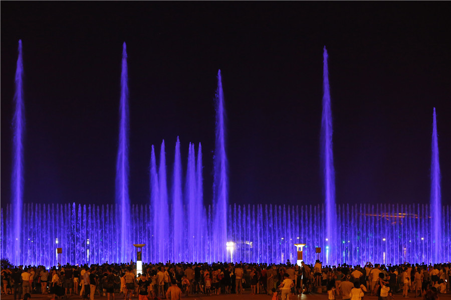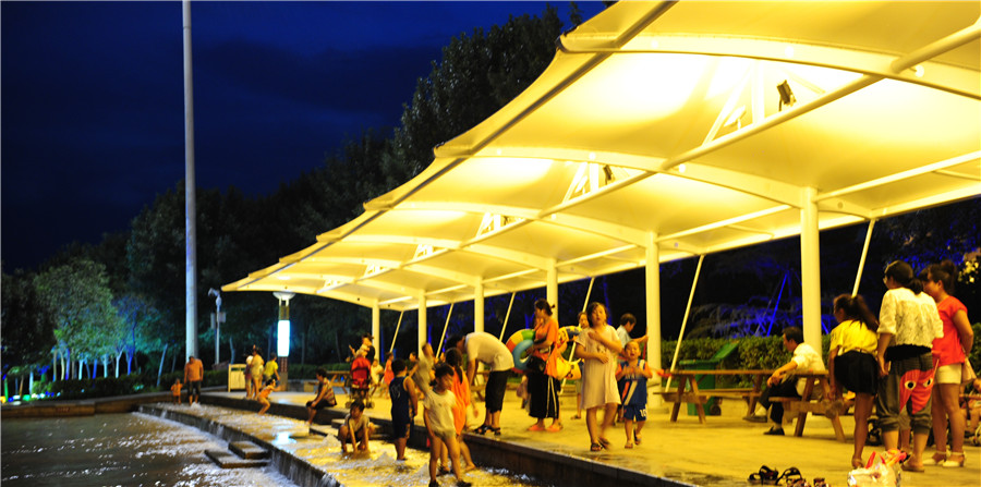 傍晚的綠博園,烈日已逐漸消退,空氣中帶有涼意,沒(méi)了市區(qū)的那份燥熱。在北廣場(chǎng)通往美食古街的內(nèi)環(huán)路上,悠閑愜意的吉他手們輕哼民謠,簡(jiǎn)單,放松;萌萌噠的網(wǎng)紅熊貓與北極熊,舞姿妖嬈;小姐姐們帶來(lái)的網(wǎng)紅串燒舞蹈,吸引著大家不由自主地跟著舞動(dòng);以鋼鐵俠、蜘蛛俠、綠巨人為主的漫威主題時(shí)尚變臉秀酷炫刺激,尖叫聲不斷;璀璨夢(mèng)幻的夜景柔美恬靜,籠罩整個(gè)園區(qū);五彩斑斕、錯(cuò)落有致的音樂(lè)噴泉成為鄭州網(wǎng)紅打卡新地標(biāo);活水循環(huán)、源源不斷涌出的戲水池帶你一掃燥熱,清涼一夏!
