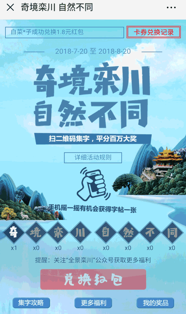 集齊“奇境欒川”,可兌換18元微信紅包;