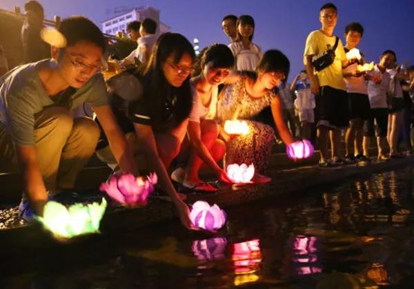 七夕節(jié)放河燈,我國(guó)自古有之。隨著夜幕降臨,人們將一盞盞點(diǎn)亮的河燈放置在水中,讓其順?biāo),以此寄托?duì)逝者的緬懷,對(duì)活著的人們的祝福,希望隨著長(zhǎng)流水,去除疾病災(zāi)禍,祈求一生平安、吉祥。