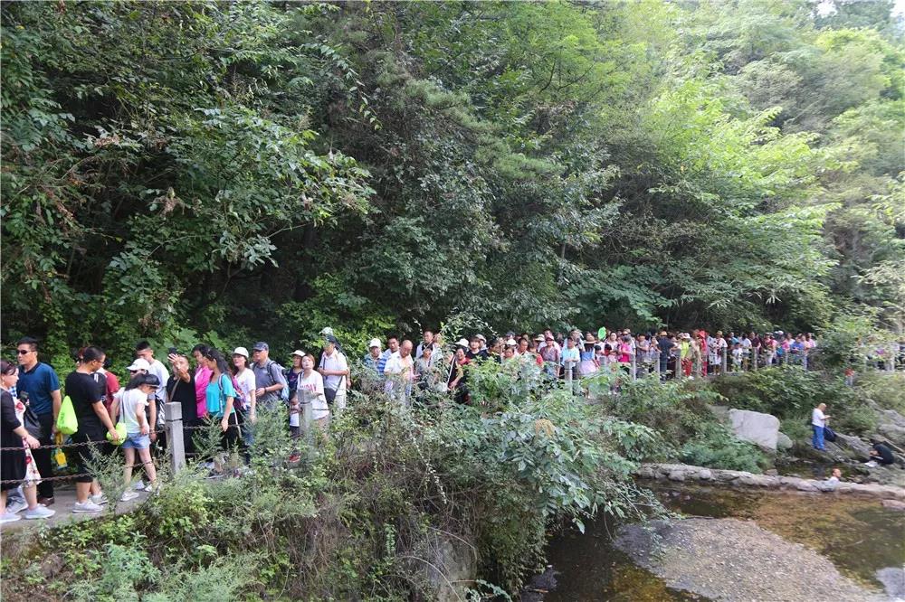 第二天,游客們帶著飽滿的熱情上山游覽美景。8月26日,老君山索道站游客有序的排隊(duì)乘坐索道上山。
