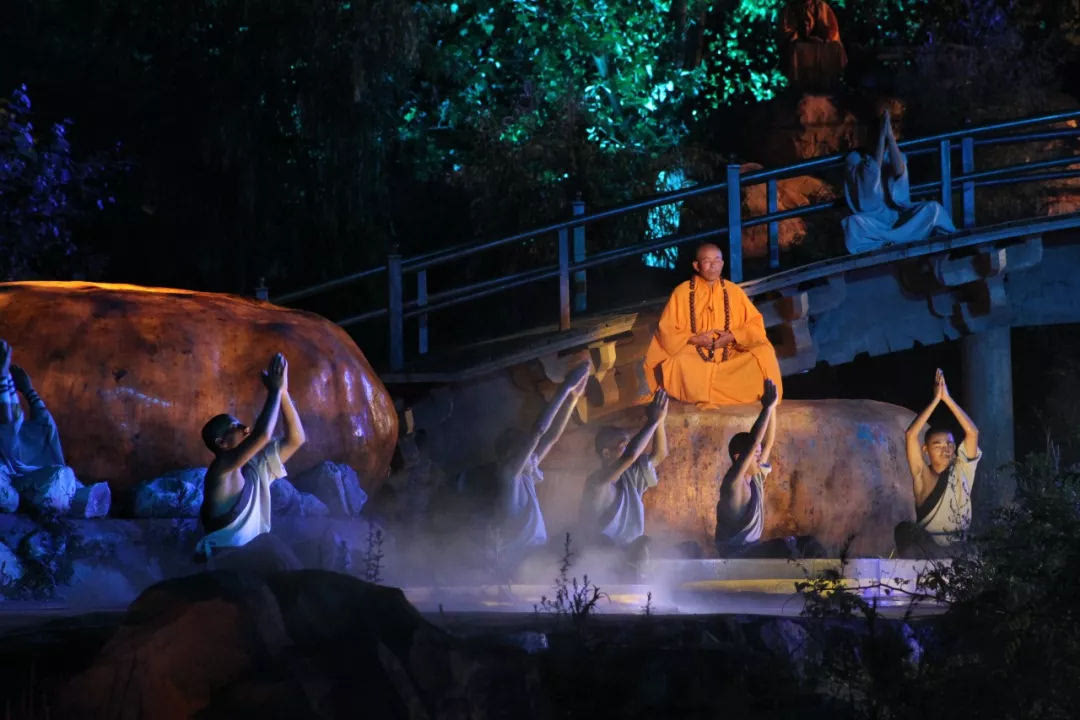 《石樂·禪頌》是演出的唱頌篇,奏出了“嵩山修禪,頑石開言”的大境界。演出尾聲時(shí)佛光普照,天地祥和。這是禪對(duì)自然的吟詠,對(duì)生命的眷愛,對(duì)天地萬物的禮贊。