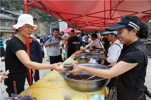雖然活動(dòng)密集、參與的游客眾多,但老君山成功做到了服務(wù)不打折。在活動(dòng)之前,河南省老君山文旅集團(tuán)提前召集景區(qū)領(lǐng)導(dǎo)班子成員、全體員工、家庭賓館、商戶(hù)、電瓶車(chē)司機(jī)等近500余人召開(kāi)了動(dòng)員會(huì)。制定了詳細(xì)的接待方案,以應(yīng)對(duì)可能出現(xiàn)的臨時(shí)性問(wèn)題,其中包括住宿、餐飲、交通等多項(xiàng)應(yīng)對(duì)措施。活動(dòng)中,旅游+扶貧成為景區(qū)又一亮點(diǎn),為游客免費(fèi)發(fā)放兩萬(wàn)余穗玉米,都是從扶貧農(nóng)戶(hù)手中購(gòu)買(mǎi),獲得了游客連連點(diǎn)贊,此外,免費(fèi)的綠豆湯也為游客解去夏日里的暑熱。