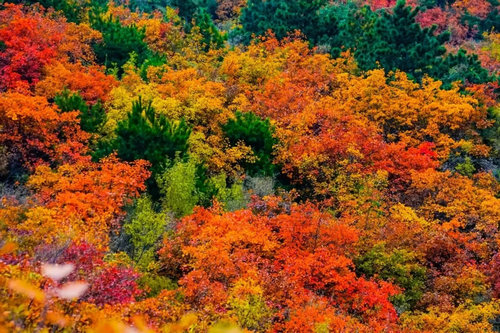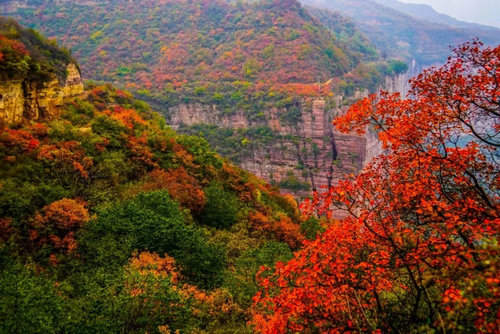 舉目四望,秋山如霞,天藍若碧、層林盡染、萬山紅遍,簡直是一場登峰造極的視覺盛宴。