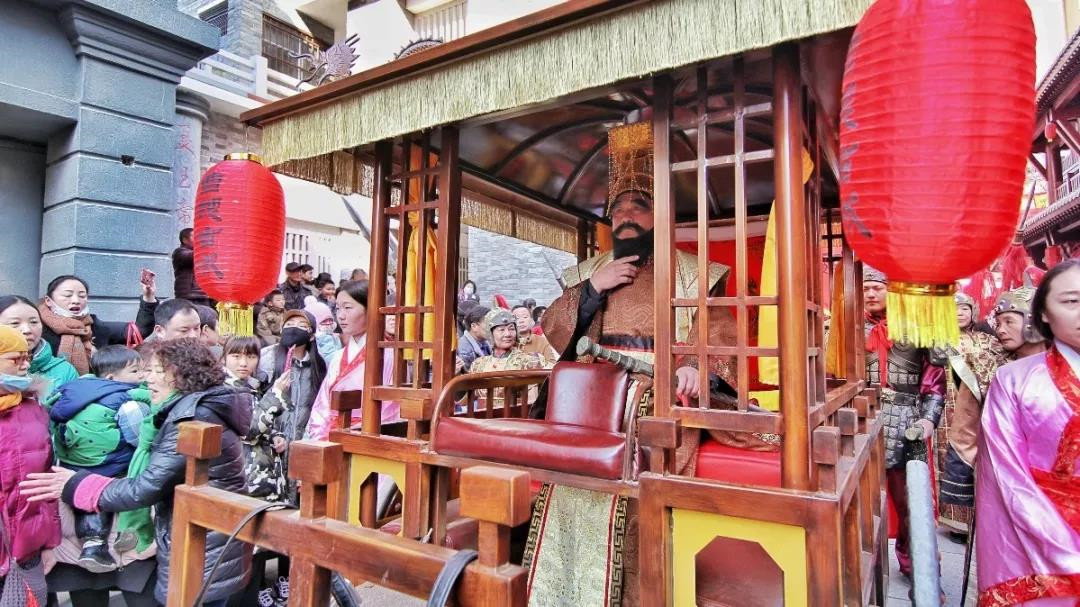 2018年2月8日曹魏古城盛大開街!魏王曹操首次亮相曹魏古城,帶領一眾文武百官,士兵宮女在南大街上華麗出行,賜福于千萬游客,備受大家歡迎。
