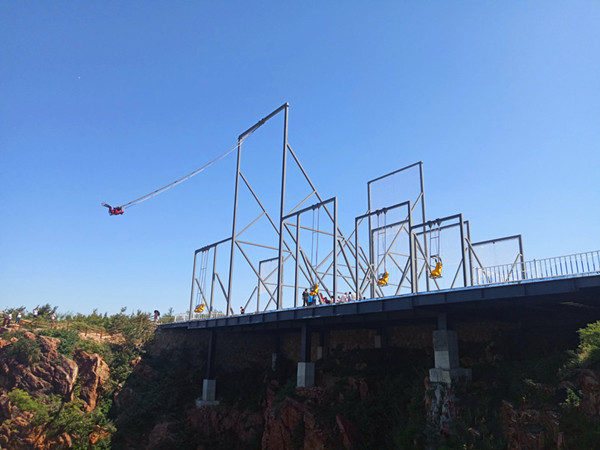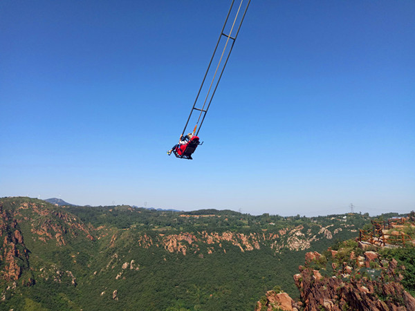 據(jù)了解,該“懸崖秋千”為機(jī)械式秋千,擺臂有四種高度,分為4米、6米、8米和20米,8米×8米的雙人座組合更是國內(nèi)首創(chuàng)。在該項目上,伏羲山旅游區(qū)投資高達(dá)500余萬元。