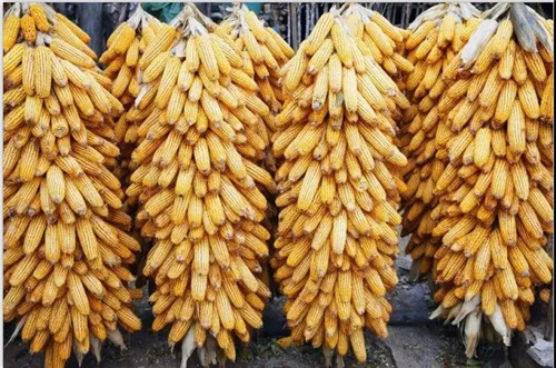 在轎頂山,晾曬靠太陽,揚場靠山風,幾經勞作,才有這一串串金色的玉米塔。