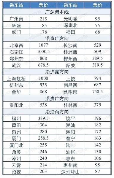 自打廣深港高鐵開通的消息發(fā)布后,社會(huì)各界最關(guān)注的就是“票價(jià)”問題。9月7日,香港至內(nèi)地城市各地高鐵票價(jià)公布,票價(jià)終于敲定!其中,香港至北京西票價(jià)為1077元,香港至鄭州票價(jià)為868元。