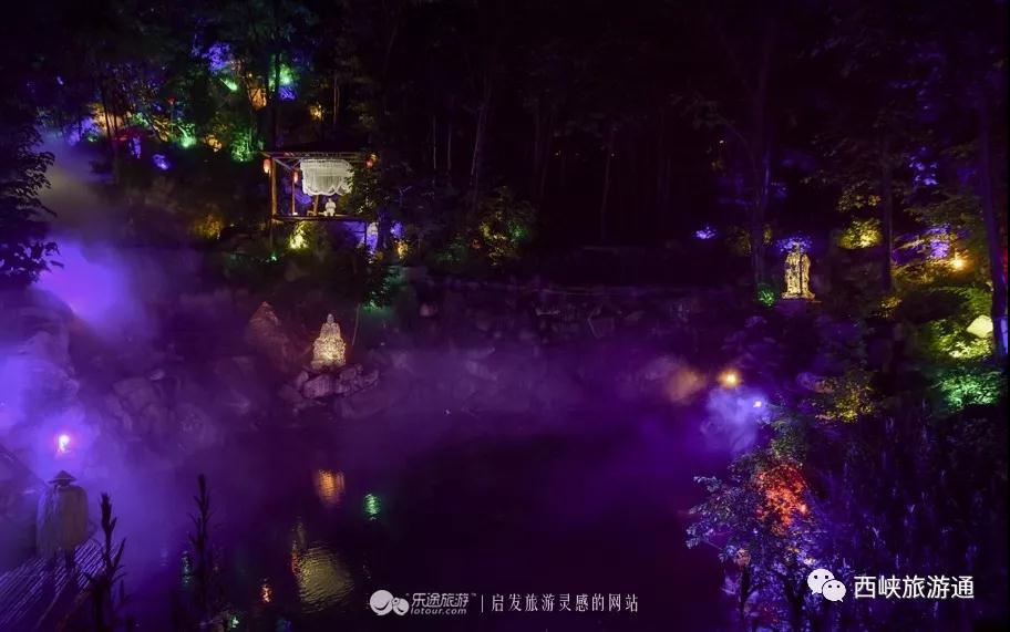 漫步在這燈紅酒綠的小街,快樂是主旋律。道路兩旁的燈光秀也是別具一格,五顏六色的燈光營造氣氛,不時噴出的煙霧纏繞著老君像,伴著潺潺的流水,宛如行走在仙境。