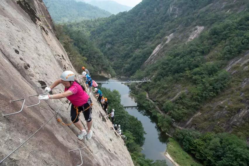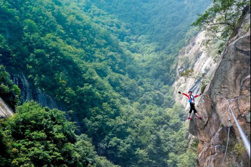 五道幢飛拉達攀巖倚靠崖壁而建,與自然風景完美融合,讓攀登者從全新的角度進行攀巖,驚險刺激的同時安全有保障,鍛煉身體的同時可以欣賞風光旖旎的自然美景、可謂聚雄、奇、險、秀、巧為一身,被稱為“勇敢者的游戲”。