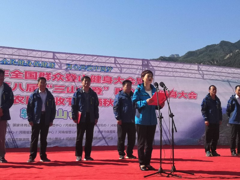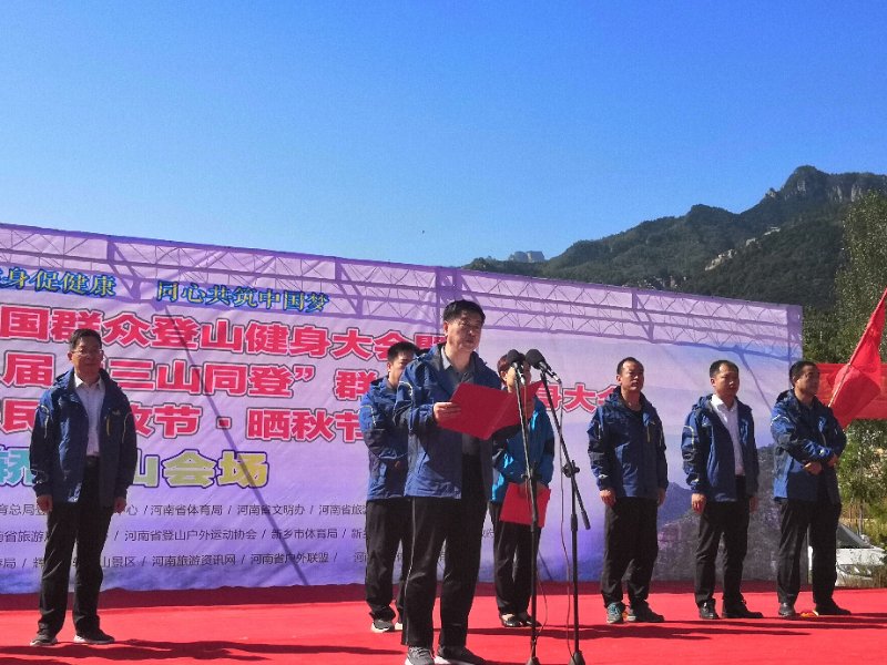 2018年9月23日,2018年全國群眾登山健身大會(huì)暨“體彩杯”河南省第八屆“三山同登”群眾登山健身大會(huì)和首屆農(nóng)民豐收節(jié)·曬秋節(jié)在轎頂山景區(qū)隆重開幕。河南省體育局社體中心副主任李罡、新鄉(xiāng)市外事僑務(wù)旅游局局長(zhǎng)崔紅、新鄉(xiāng)市體育局副局長(zhǎng)王建華、輝縣市委常委宣傳部部長(zhǎng)靳開偉、輝縣市文明辦主任路會(huì)民、輝縣市體育發(fā)展中心主任張曉銀、輝縣市旅游發(fā)展中心主任劉振、沙窯鄉(xiāng)黨委書記劉俊輝、河南省登山協(xié)會(huì)副秘書長(zhǎng)、河南戶外聯(lián)盟理事長(zhǎng)陳學(xué)政、輝縣市轎頂山景區(qū)董事長(zhǎng)趙平生等領(lǐng)導(dǎo)出席此次活動(dòng)。來自全國各地的眾多登山愛好者、媒體朋友和攝影愛好者在此聚集,在這個(gè)五彩斑斕的季節(jié)暢游最美轎頂山。