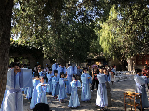 為增加節(jié)日看點,向游客展示天地之中世界歷史文化遺產(chǎn)地的特色文化魅力,在扮靚景區(qū)營造濃厚假日氛圍的同時,還精心策劃籌備了文武合一的系列主題演藝活動。“文”即以嵩陽書院儒學(xué)文化為代表的拜孔儀式和以中岳廟道教文化為代表的百人誦讀弟子規(guī)祈福儀式。“武”即以少林寺功夫文化為代表的“少林功夫秀”、“印象少林”、“少林英雄會”和以中岳廟儒、道哲學(xué)為結(jié)合的太極拳等多元文化演藝節(jié)目,為游客參與互動體驗和圓夢嵩山增添美好旅行印記,并藉此進(jìn)一步提升嵩山少林多元文化品牌聲譽(yù),進(jìn)一步強(qiáng)化嵩山景區(qū)在河南乃至國內(nèi)外的旅游形象。