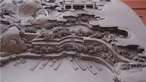 中國傳統(tǒng)文化中的文房四寶,硯為其一。在中國所產(chǎn)的四大名硯中,尤以廣東省端硯最為稱著。作為以傳承中國傳統(tǒng)文化為核心的中國翰園碑林,為了更好詮釋南北傳統(tǒng)文化的精髓,特地請(qǐng)廣東制硯大師梁偉明,在重達(dá)1噸的端硯上精工雕刻“翰園八景”,巧奪天工,令人嘆為觀止。