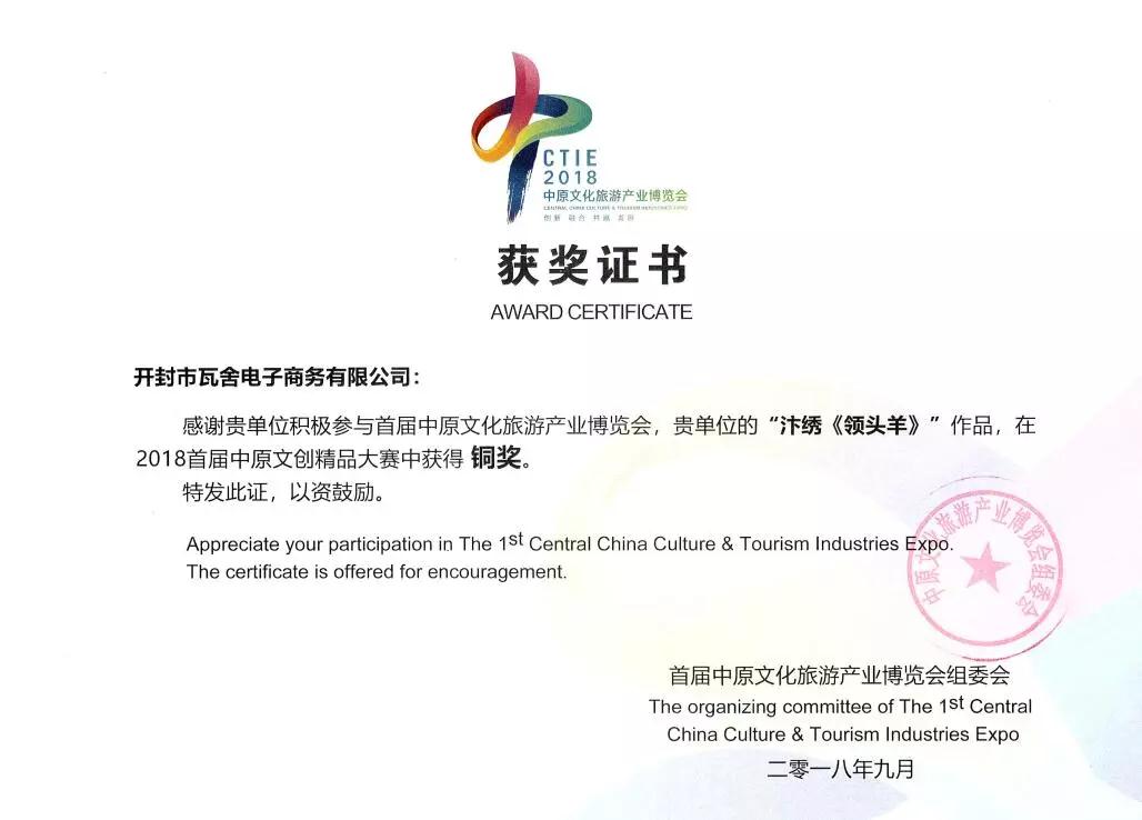 經(jīng)大賽專家評委員會評審,由開封禮物組織、報送的“大宋官菊”榮獲2018“老家禮物”大賽金獎,“汴繡《領(lǐng)頭羊》”榮獲2018首屆中原文創(chuàng)精品大賽銅獎。