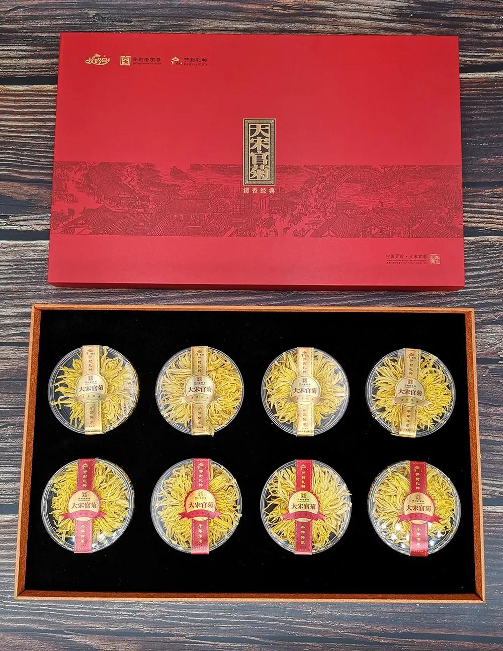 “開封禮物”【芳華】清香型菊花茶,采用開封本地大朵菊花,使用100℃沸水沖泡后,花形千姿百態(tài),口感清甜,潤喉爽口,一朵一杯,清香怡人。產(chǎn)品外包裝采用高檔禮盒,內(nèi)有亞克力水晶盒包裝,一盒內(nèi)含三朵菊花,朵大形美,保鮮安全品質(zhì)看得見。