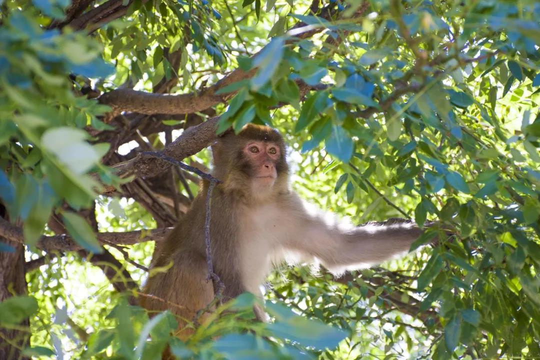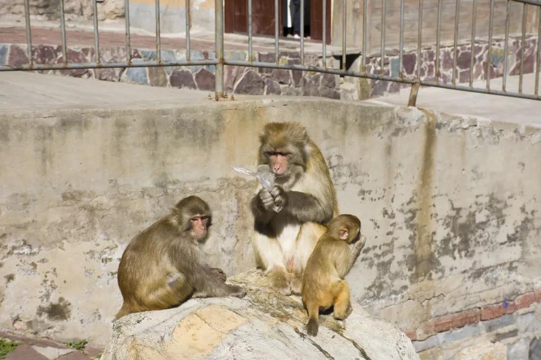庭下獼猴如小兒,攀花折果不停時(shí)。嘻嘻,我超可愛對不對?