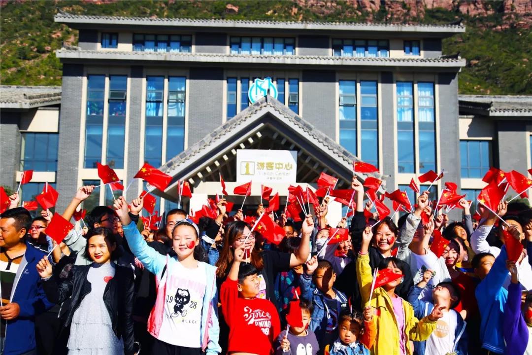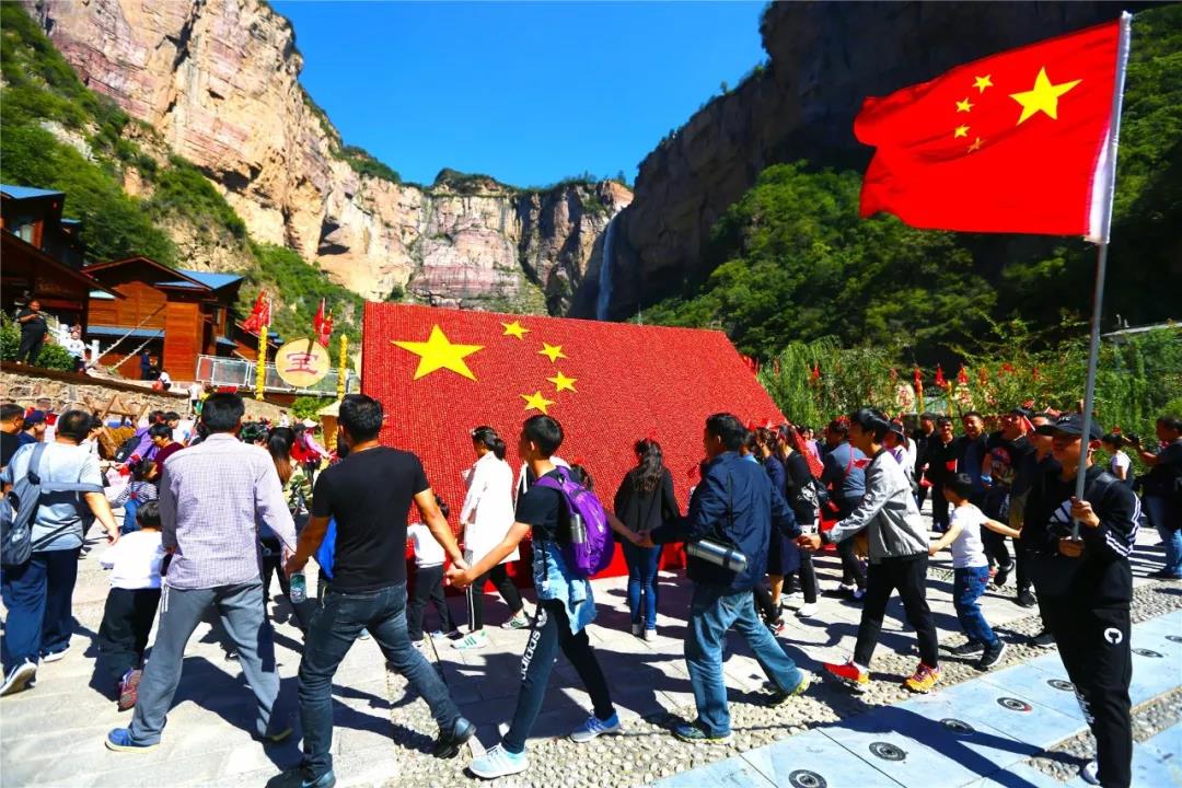 景區(qū)內(nèi)一千多斤太行山特有的山楂與剛收獲的玉米、辣椒等果實,拼接成6米長4米寬的巨幅國旗,讓游客爭相合影留念。