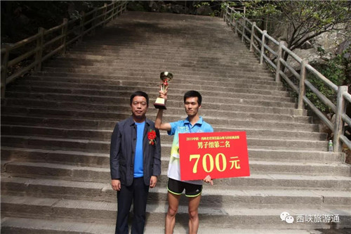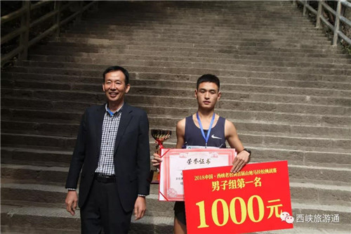 西峽縣旅游領(lǐng)導(dǎo)小組領(lǐng)導(dǎo)袁寶峰同志為男子組第一名頒獎(jiǎng)