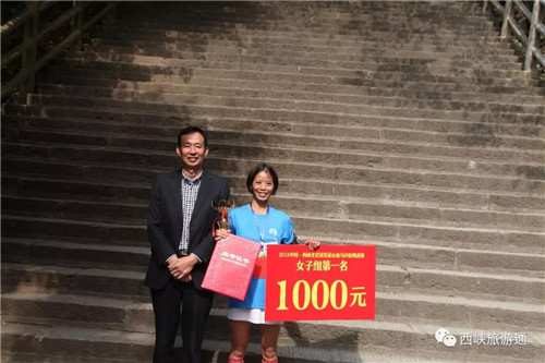 西峽縣旅游領(lǐng)導(dǎo)小組領(lǐng)導(dǎo)袁寶峰同志為女子組第一名頒獎(jiǎng)