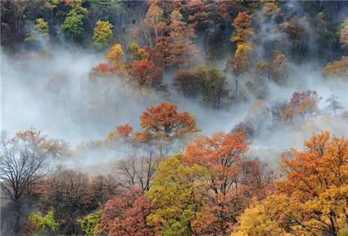 每年10月中旬至11月底,一夜秋風,層林盡染,乘索道俯瞰,萬山紅遍賽香山。