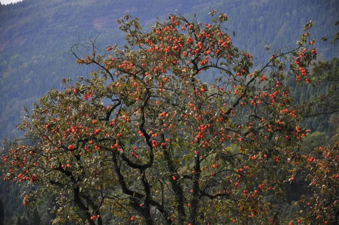 一夜寒露風(fēng),柿子掛燈籠。每年臨近秋冬時(shí)節(jié)是黛眉山一年中最美的時(shí)候,紅通通的柿子隨處可見,山前廊后,渠旁路邊,漫山遍野的柿子掛滿枝頭。