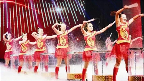 10月20日紅葉節(jié)開幕暨情人谷開園盛典當天,在情人谷素女橋(生命之門淑女巨幅雕像下)表演熱烈的水鼓舞蹈,九名紅衣鼓手分成三組,三組的“3”代表天、地、人在生命之門合為一體,九名的“9”代表大鴻與素女的中華先祖不老愛情天長地久。