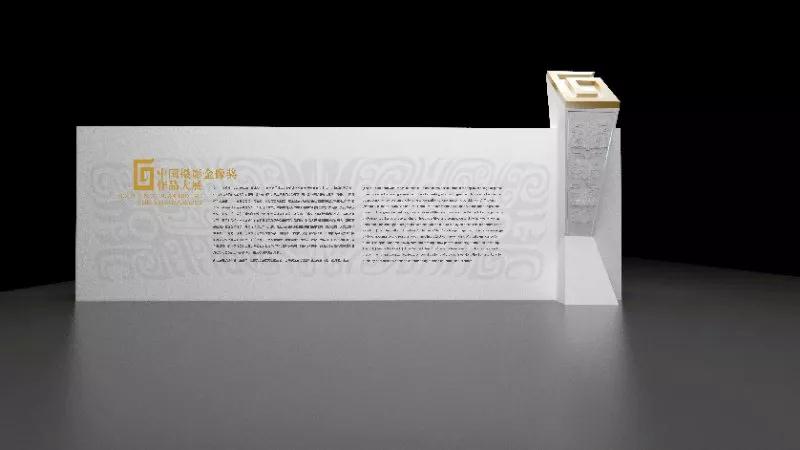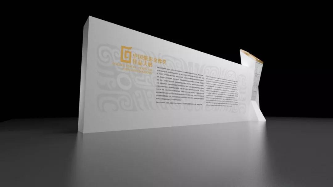 其中金像獎獲獎作品展特裝設計靈感來源于金像獎獎杯,將象征攝影界至高榮譽的獎杯等比例放大鑲嵌于展覽主背景墻一側,杯身上雕刻有中國古代青銅重器紋樣——“饕餮紋“圖案,并將這種莊嚴凝重,裝飾性強的裝飾紋樣延伸到主背景墻體上,從視覺上既有立體造型的層次感,又有形式與內容的和諧統(tǒng)一。