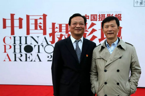 中國(guó)攝影家協(xié)會(huì)主席李舸與河南內(nèi)鄉(xiāng)縣衙博物館館長(zhǎng)、內(nèi)鄉(xiāng)縣攝影家協(xié)會(huì)主席王曉杰合影