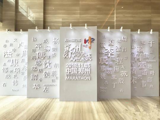 圍繞河南的根親文化,以“跑步去尋根”為主題,本屆鄭州國際馬拉松組建了由120位不同姓氏代表組成的“姓氏跑團(tuán)”,“姓氏跑團(tuán)”們高舉姓氏圖騰大旗參加半程馬拉松賽;在賽道重點區(qū)域?qū)[放56面印有姓氏圖騰的大鼓,象征著56個民族是一家,并設(shè)置姓氏文化墻,介紹姓氏起源、變遷以及行駛中的歷史名人,讓選手們通過姓氏了解自己、認(rèn)知鄭州。