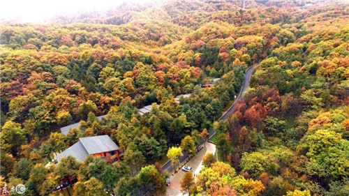 繞過彎彎的盤山路,就可進(jìn)去景區(qū)腹地沿路叢林密布,繽紛的落葉點綴著公路。俯瞰整個山脈層林盡染,如詩如畫,連陽光都為這里鍍上一層暖色調(diào),這是深秋獨有的標(biāo)志。