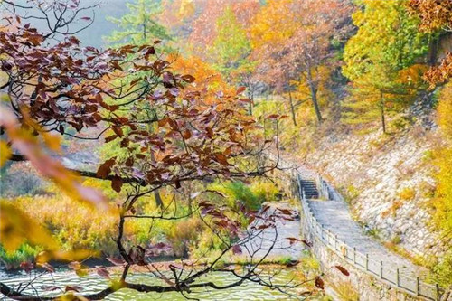 山明水凈夜來霜,數(shù)樹深紅出淺黃。金黃的樹葉隨風飄落,緩緩落進溪流中,泛起絲絲漣漪,又順流而下。 沿著小路,輕踩一地溫暖,信手拾一片落葉,滿眼都是五彩山景......也許轉(zhuǎn)過一個彎兒,又是另一片絢爛景致。